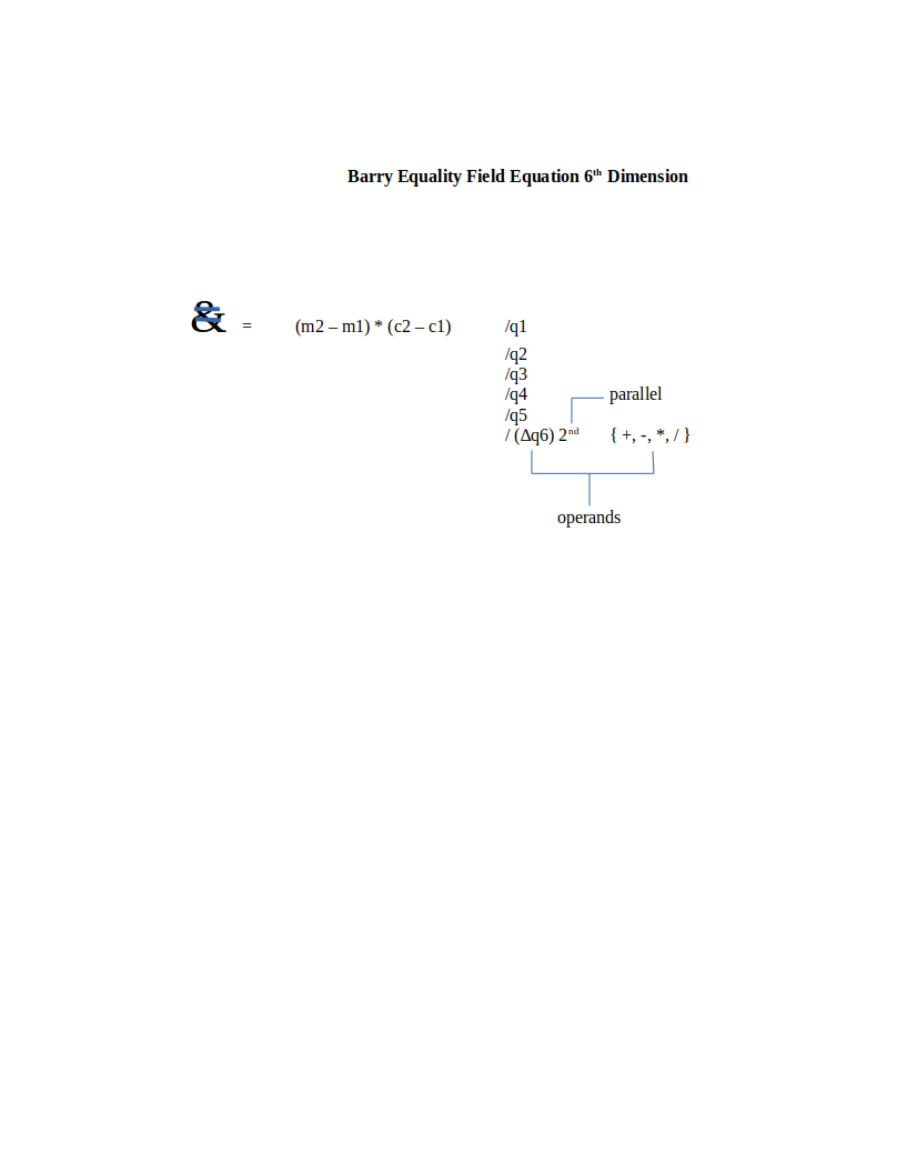 Barry Equality Field Equation is a service mark of Barry Lee Crouse Registered in Idaho and Canada.
